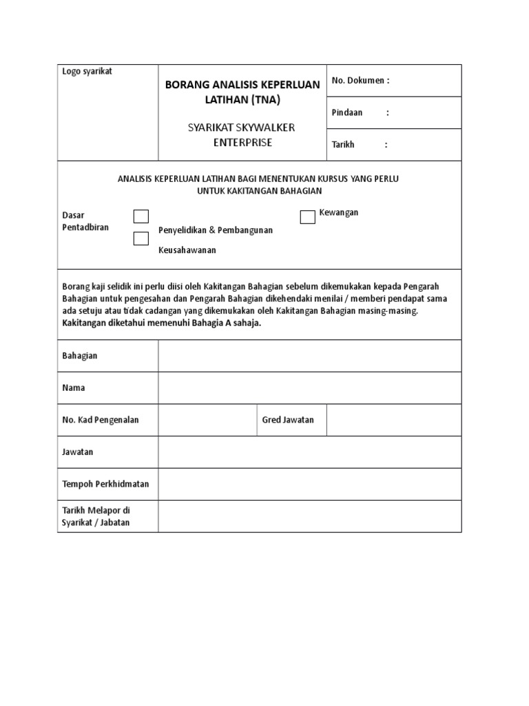Borang Analisis Keperluan Latihan Pekerja Pdf